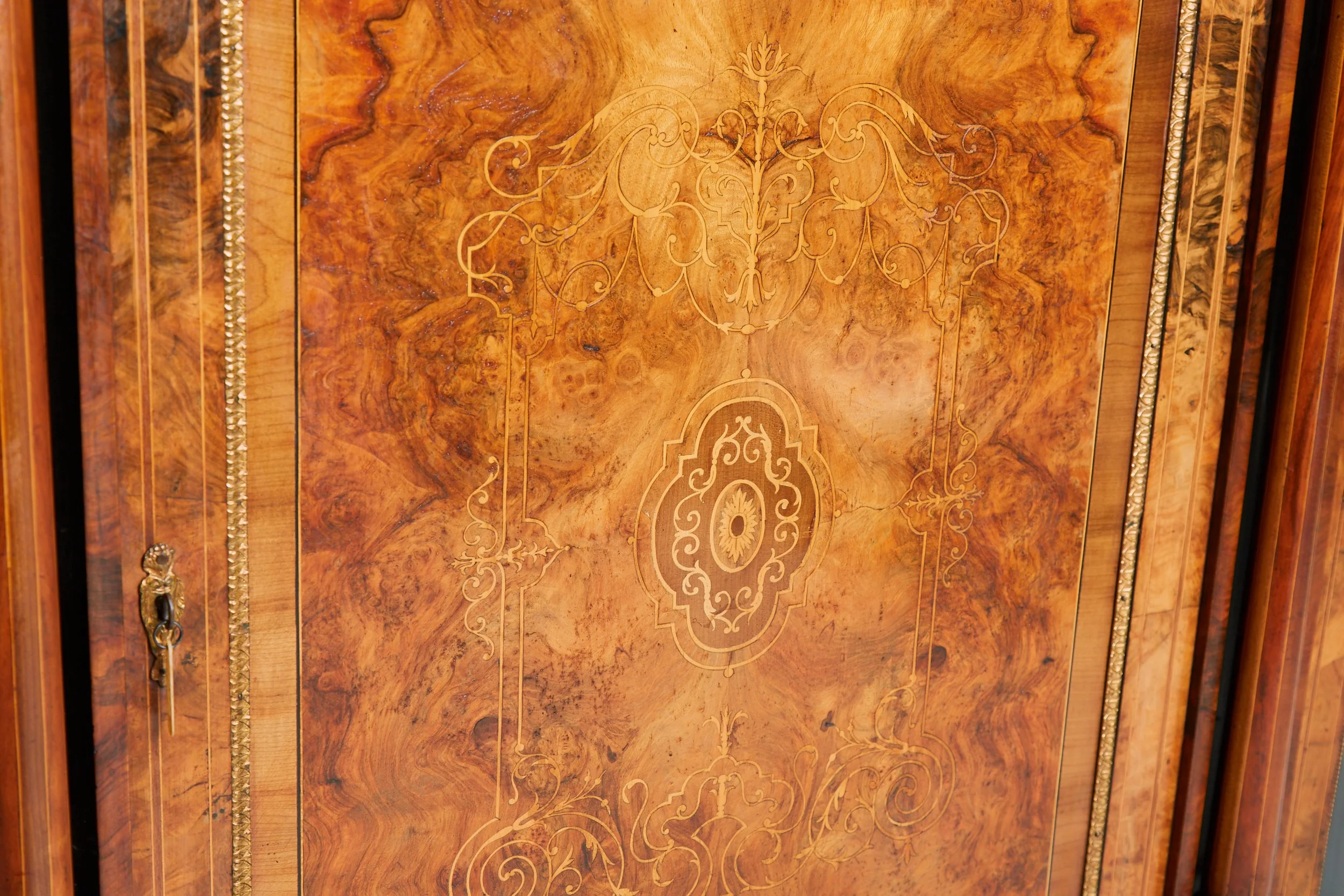 Circa 1860, superb quality large Victorian inlaid burr walnut credenza.